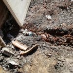 Garage taken down, roofing steel kept as was fairly new and could be re-used. Concrete base for the old shed taken up and broken to manageable chunks. Slabs taken up and smashed and carried away.