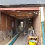 Today the builders took out the hallway to the new build and the side window with it.  This enabled them to put in the floorboards and start on the insulation.  The wall is not completely knocked out but you can start to see some shape coming along.