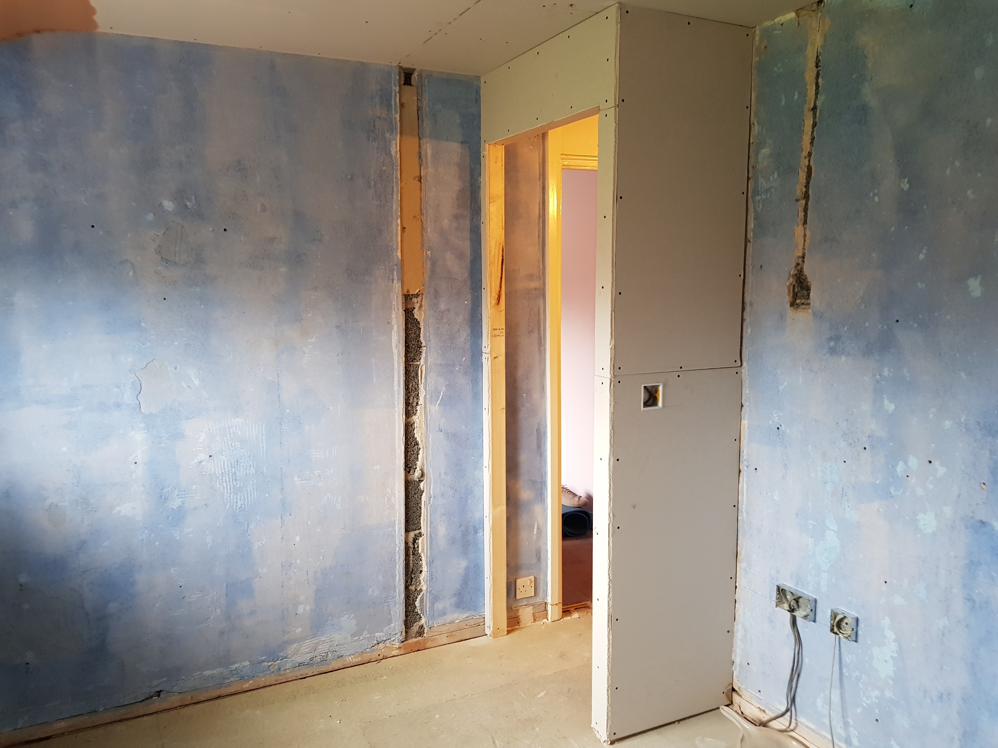 Kitchen was plastered today and the stud wall completed and ready to plaster. The weather…